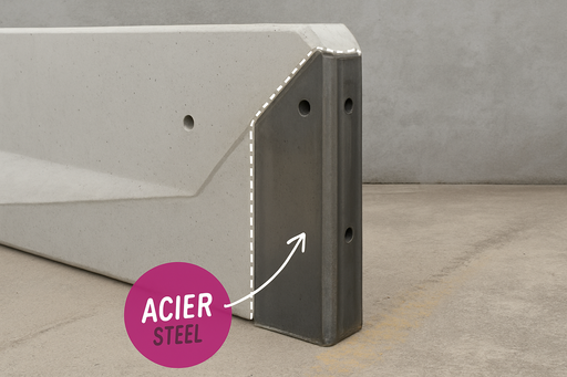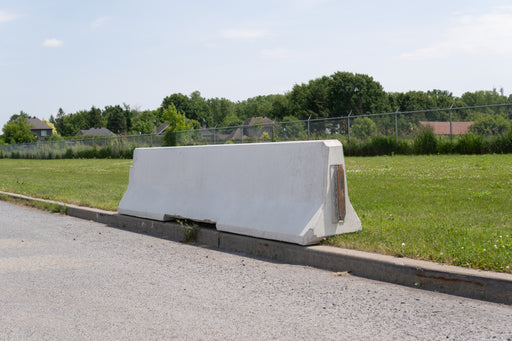 Glissière de sécurité en béton à 90°. Livraison et installation rapide disponible pour tous nos produits de béton. Contactez-nous!